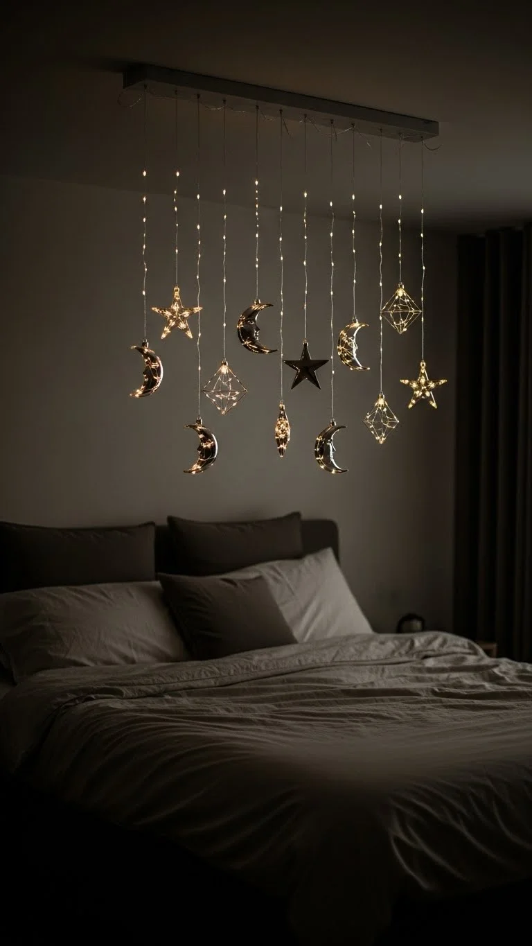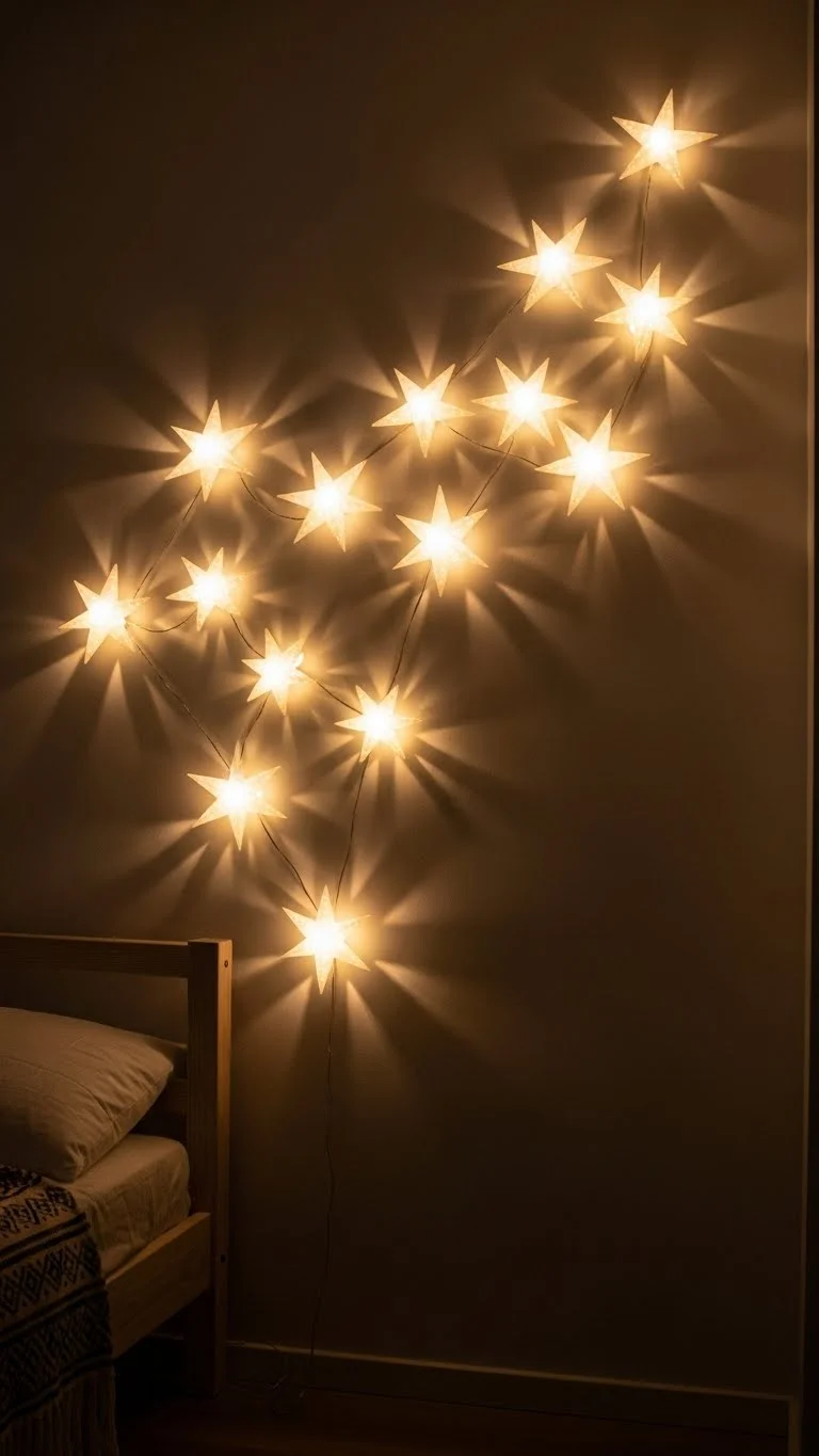 Decorate a wall with star-shaped lights. LED stars are affordable and versatile. Arrange in clusters or patterns. They add a magical, nighttime feel, creating a whimsical holiday ambiance.