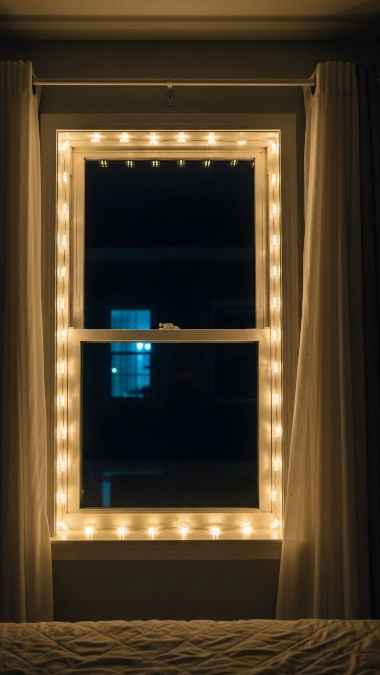 Frame your windows with twinkling lights. This adds festive cheer without taking up space. LED lights are energy-efficient and long-lasting. Use small clips or adhesive hooks for easy installation. The reflection on glass and walls creates depth and warmth, enhancing the cozy winter vibe.