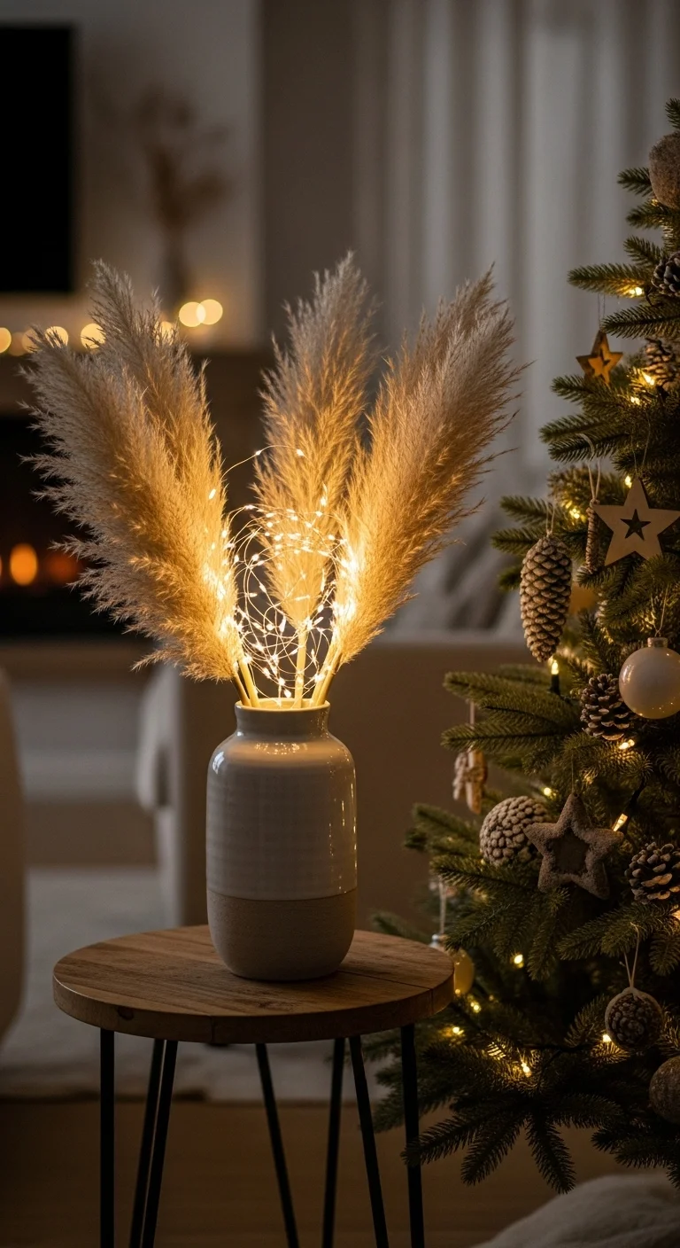 Add pampas grass to vases, wreaths, or tree decor for soft texture. It brings in that relaxed desert-boho feel. Combine with eucalyptus or dried flowers for balance. You can find affordable bunches at craft stores or dry your own.