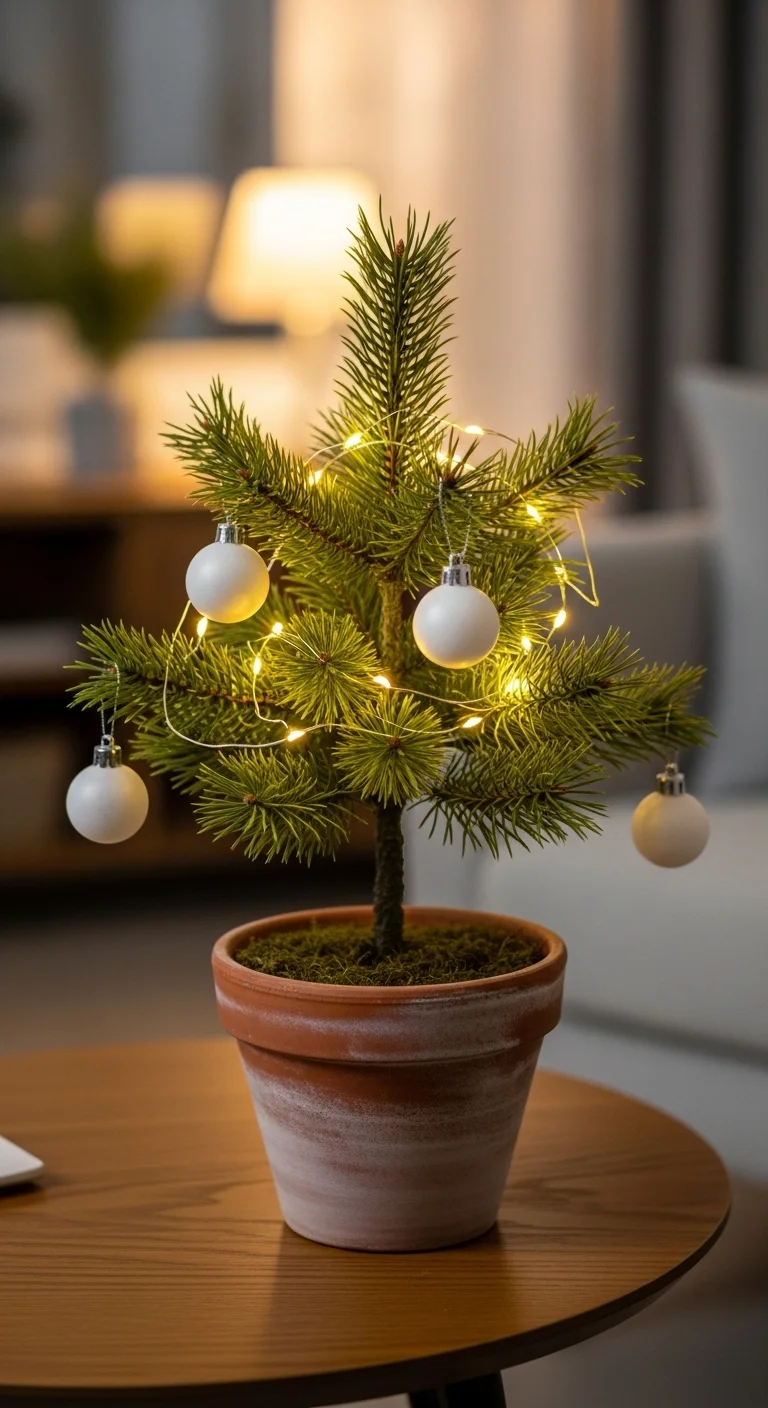 Keep it simple with a minimalist tree. Use a small real or faux pine and decorate with just lights and plain ornaments. It’s perfect for small spaces and easy to maintain. Wrap gifts in kraft paper to match the clean aesthetic.