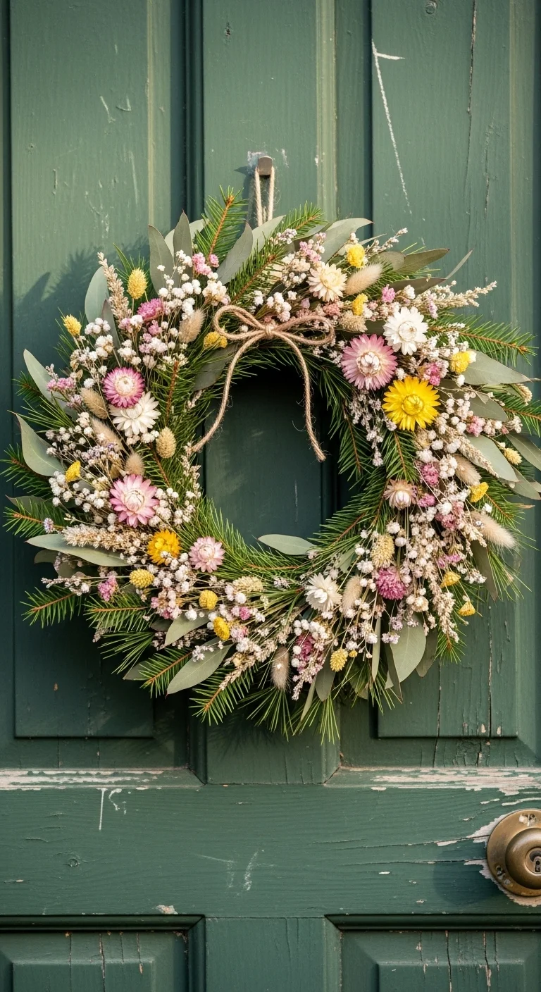 Wreaths don’t have to be fresh. Use dried flowers, eucalyptus, and preserved greenery for a long-lasting look. Secure them with wire on a simple base. Add ribbon that matches your color scheme. It’s elegant, sustainable, and easy to make yourself.