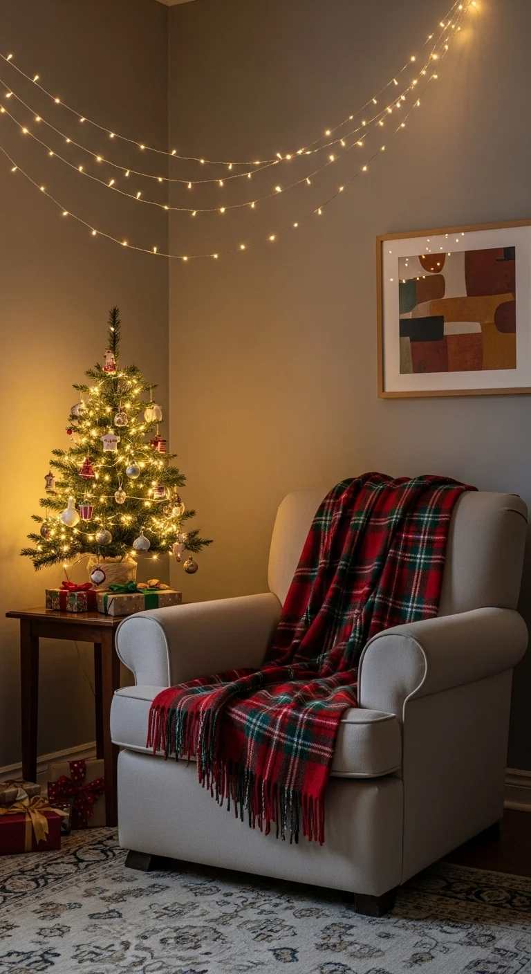 Transform a small corner into a holiday reading nook. Add a plush chair, soft throw, and side table with a candle. Decorate with mini trees or garlands. It’s the perfect space to unwind with cocoa and your favorite Christmas stories.