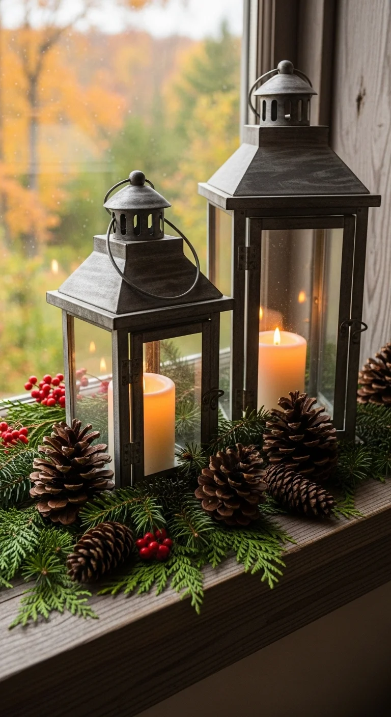 Add lanterns with LED candles to your windowsill or dresser. Fill the base with pinecones or ornaments. You can often find affordable lanterns at thrift shops. They cast a gentle glow that makes the whole room feel peaceful and festive.