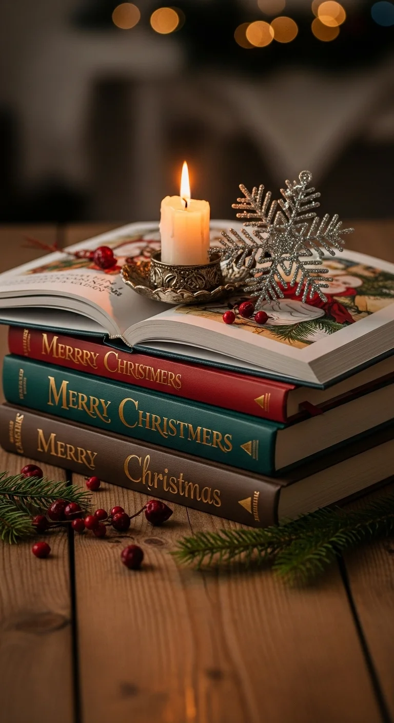 Stack a few Christmas books on your nightstand or coffee table. Add a candle or small ornament on top. It’s simple decor that also invites cozy reading nights. Check thrift stores for cheap finds.