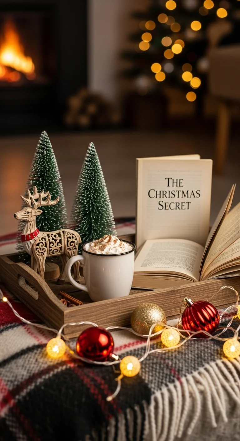 Place your tray on a soft throw or folded blanket for a cozy touch. Add a mug of cocoa, a candle, and small holiday trinkets. This setup works beautifully on a sofa or bed. It’s both practical and photogenic.