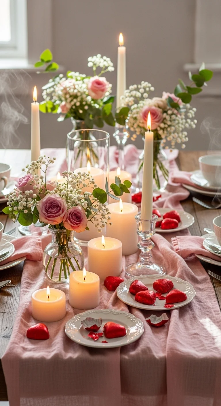 - Focus on 2–3 colors: classic red, soft pink, white, and gold accents work beautifully
