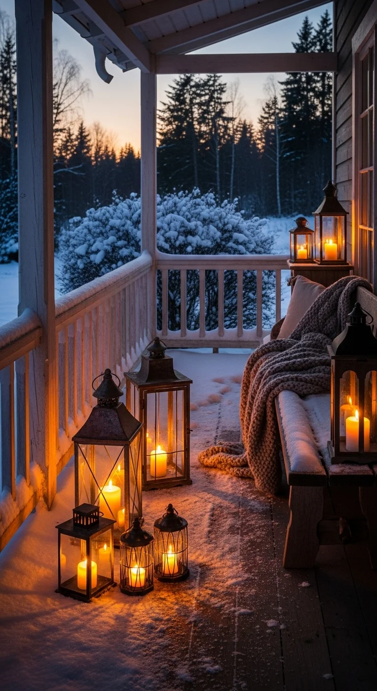 Add lanterns filled with candles or fairy lights on your porch, mantel, or steps. Choose metal or distressed wood finishes. The warm glow instantly feels inviting and old-fashioned. Perfect for both indoor and outdoor use.