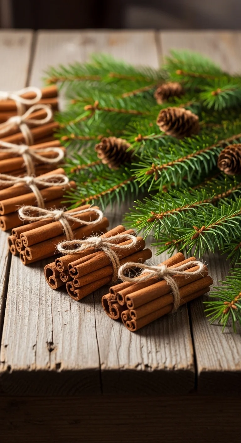 Tie cinnamon sticks into small bundles with twine and scatter them across your tablescape or mantel. They smell amazing and look perfectly rustic. Combine them with oranges or pinecones for added warmth.