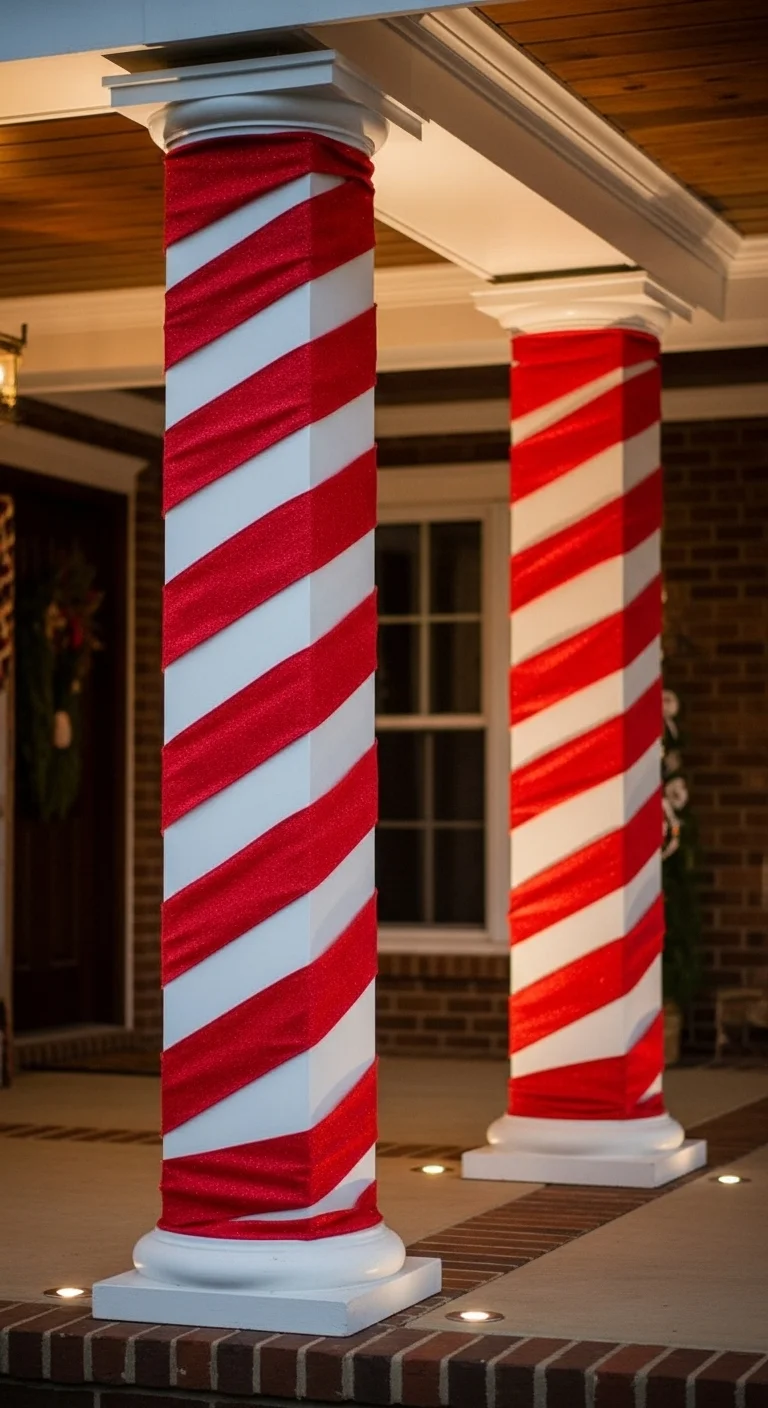 Turn your columns into candy canes using wide red ribbon. Secure it in a spiral pattern. It’s festive, fun, and instantly recognizable from afar.