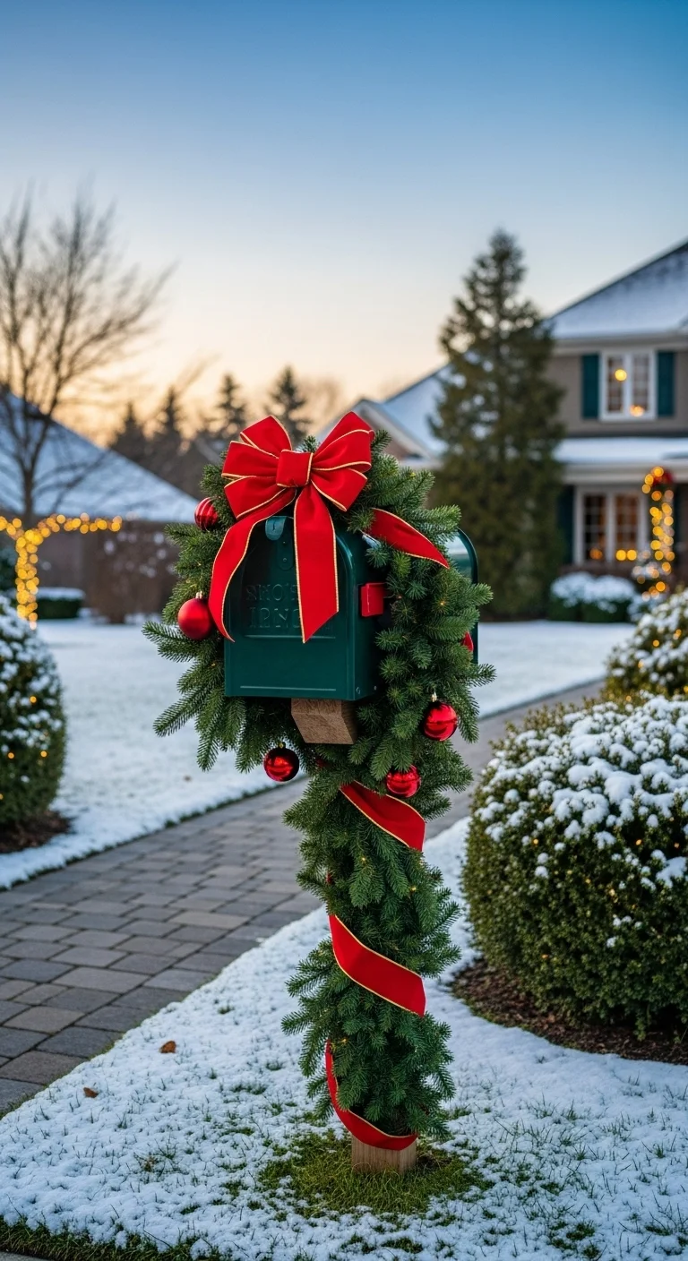 Dress your mailbox with garland and a bow to extend your porch theme outward. It’s a small detail that neighbors love to spot.