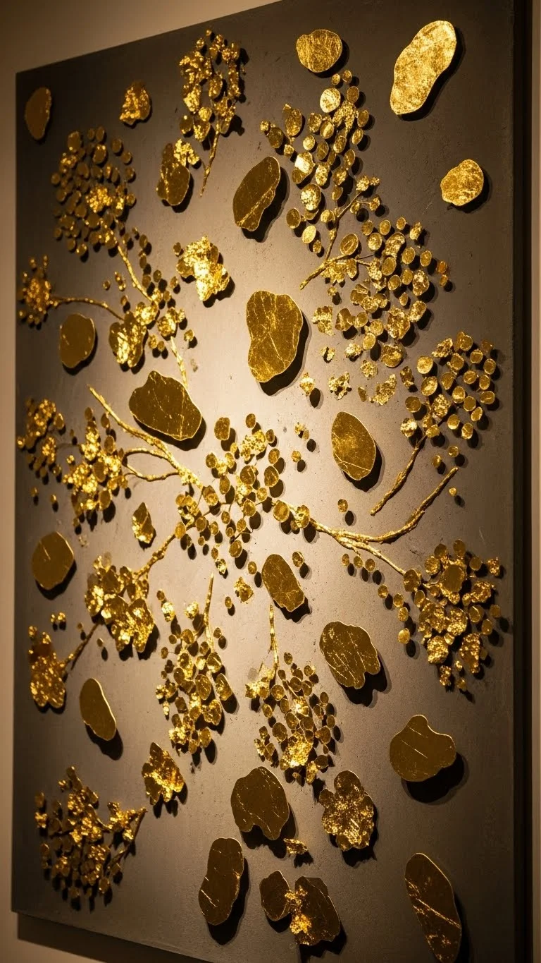 Apply gold leaf to wall accents or frames for luxurious sparkle. Small applications can be done on picture frames, shelves, or mirrors for subtle glam. This inexpensive DIY adds shimmer to blank walls and complements other gold decor. Even minimal touches can make a big impact in modern or traditional settings.