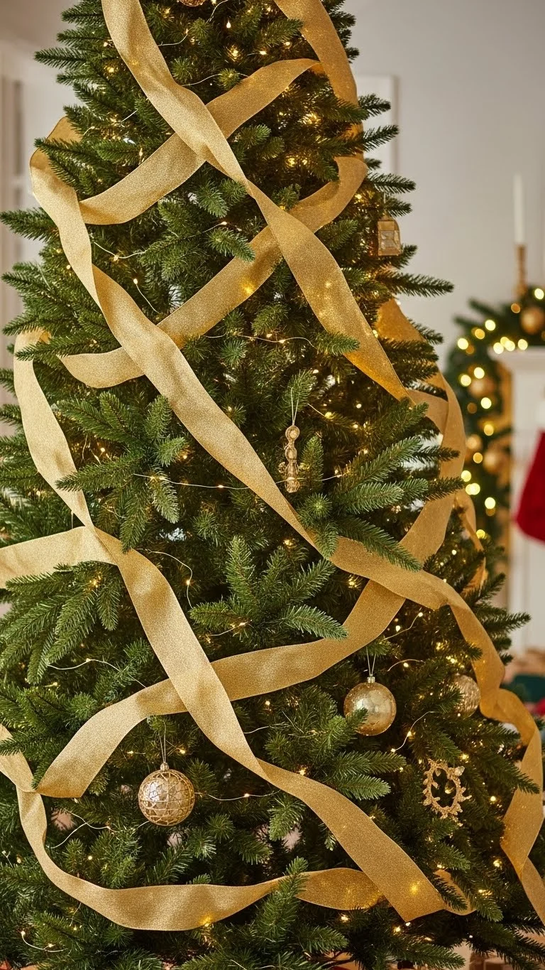 Wrap your Christmas tree with wide gold ribbon for a polished and elegant appearance. Weave ribbon in and out of branches for depth. Pair with white or metallic ornaments to maintain a cohesive look. Ribbon is inexpensive, reusable, and adds instant sophistication. Opt for glitter-free satin or mesh ribbons for a more modern, sleek effect.