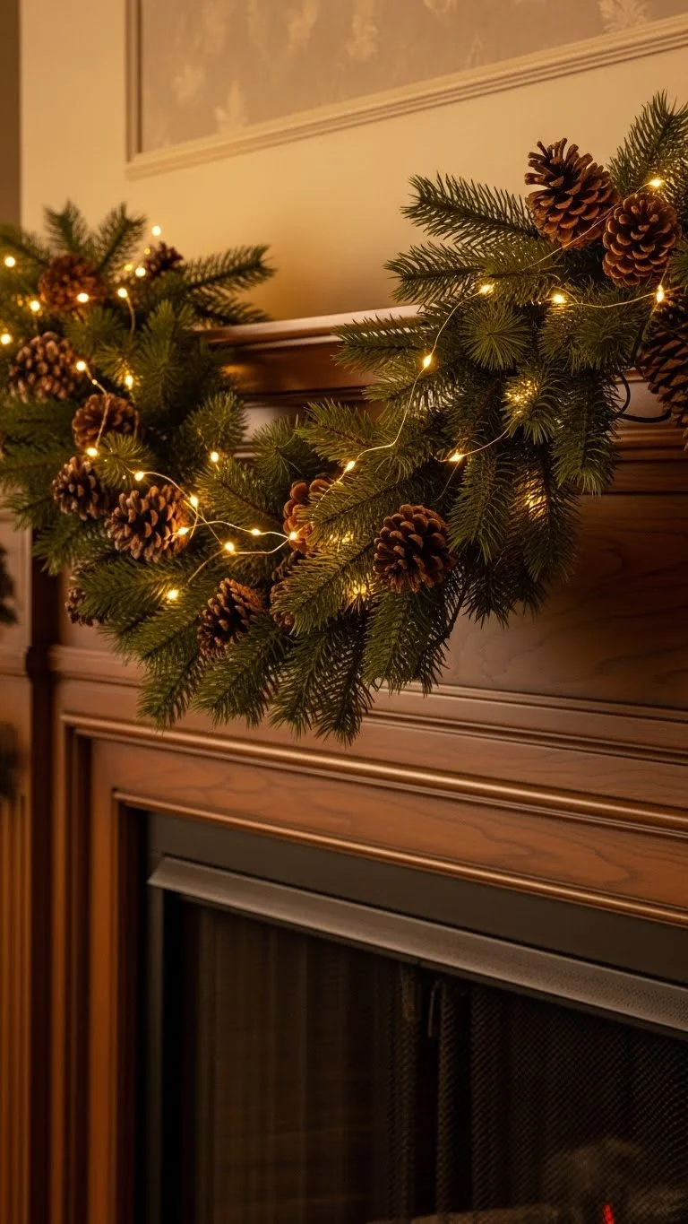 Drape a pine garland along your mantel for a classic Christmas look. Mix in pinecones and subtle fairy lights for warmth. You can use real or faux garlands depending on availability and budget. Real garlands bring a fresh scent, while faux options last longer and are reusable. Add small decorative touches like berries or miniature ornaments to make the display unique. Keep it simple for a natural, effortless feel.