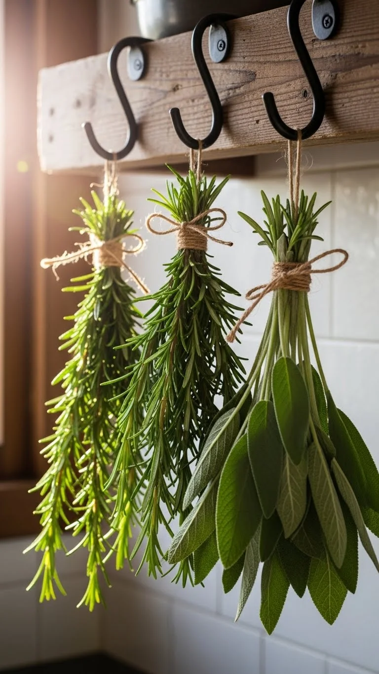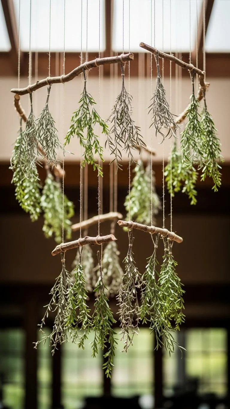 Bundle fresh herbs like rosemary or sage and tie with twine for simple hanging decor. Herbs bring subtle fragrance and green texture. Hang them in the kitchen, by a fireplace, or on walls. This adds a rustic touch and is budget-friendly. You can reuse herbs in cooking if desired, making this functional as well as decorative.