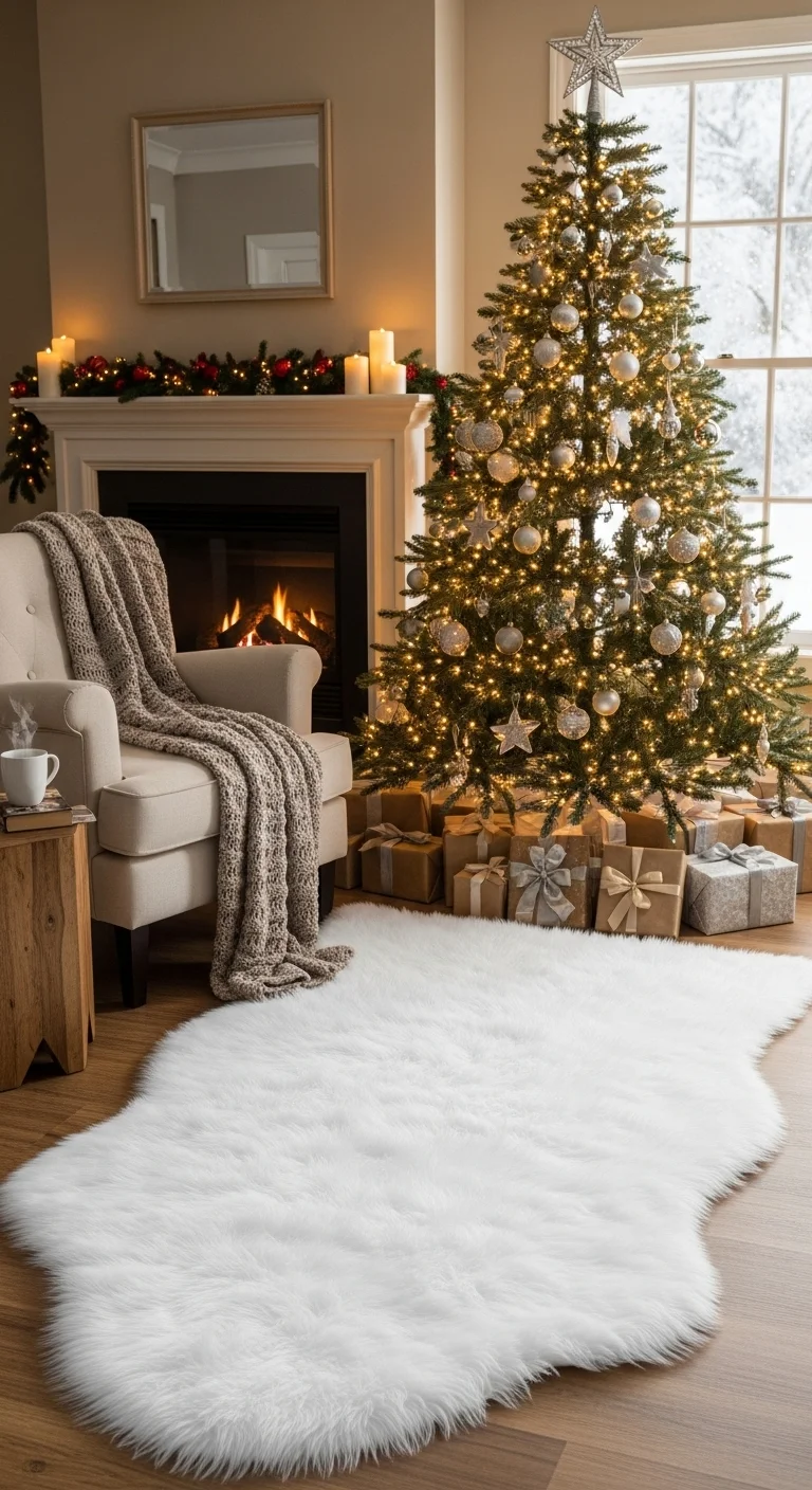 Lay down a faux fur rug to create instant coziness. It softens hard floors and makes your living room feel luxurious. Choose ivory or light gray to keep the look elegant. You can even layer it under your coffee table or by the fireplace for added warmth.