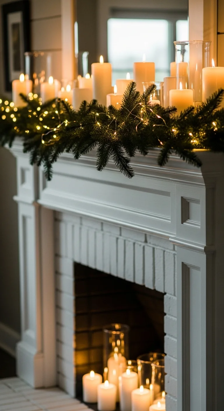 Line your mantel with candles of different heights for a layered look. Add a bit of greenery and fairy lights for balance. This soft lighting makes your living room glow without overwhelming the space.