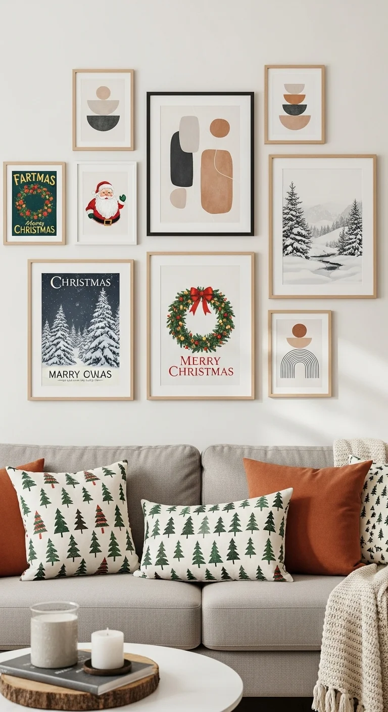 Swap out your regular artwork for holiday prints or simple winter quotes. Choose muted colors that blend with your decor. Print free designs online and frame them for a quick, affordable update.
