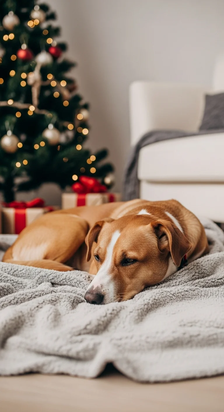 Don’t forget your furry friends. Create a small cozy spot for your pet near the tree or fireplace. Add a soft blanket or pet bed with a Christmas-themed toy. It adds warmth and makes them part of the celebration.