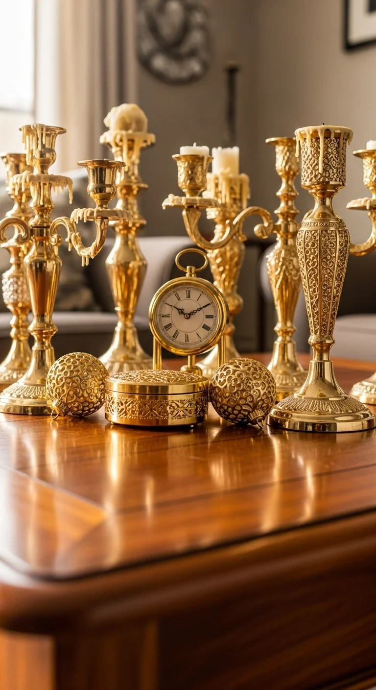 Touch up your living room with gold accents — think candle holders, vases, or picture frames. A little shimmer adds warmth and pairs beautifully with whites and neutrals. Keep it subtle for a cozy, elegant feel.
