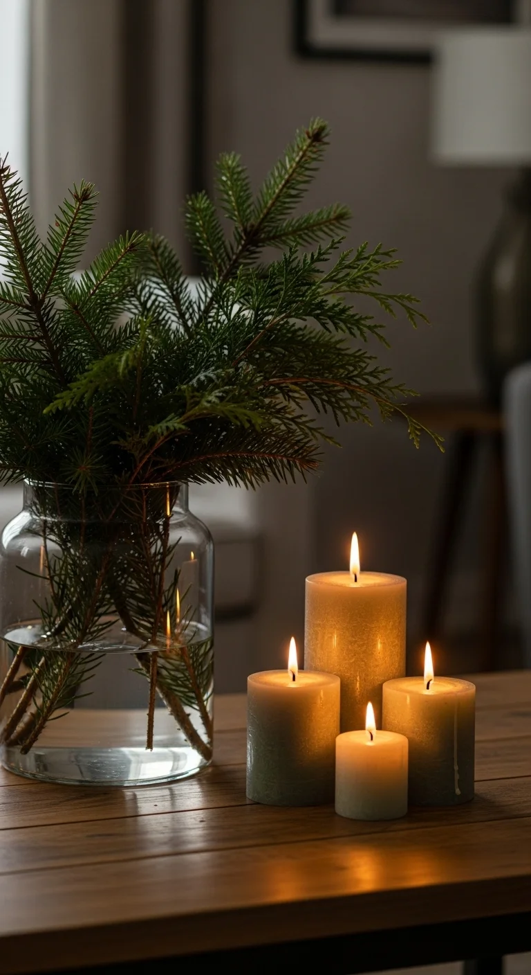 You don’t need fancy decor — just fresh greenery. Snip some pine or cedar branches and place them in glass vases or jars. The scent alone makes your living room feel festive. It’s simple, affordable, and pairs beautifully with neutral decor.