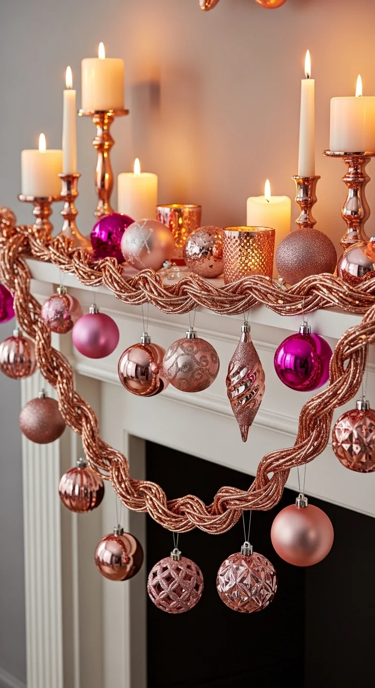 Add modern romance with rose gold and blush pinks. Pair metallic ornaments with ivory garlands. Keep lighting soft and warm. This theme works beautifully in both modern and vintage homes. Reuse old gold décor and add pink accents with spray paint for a chic update.