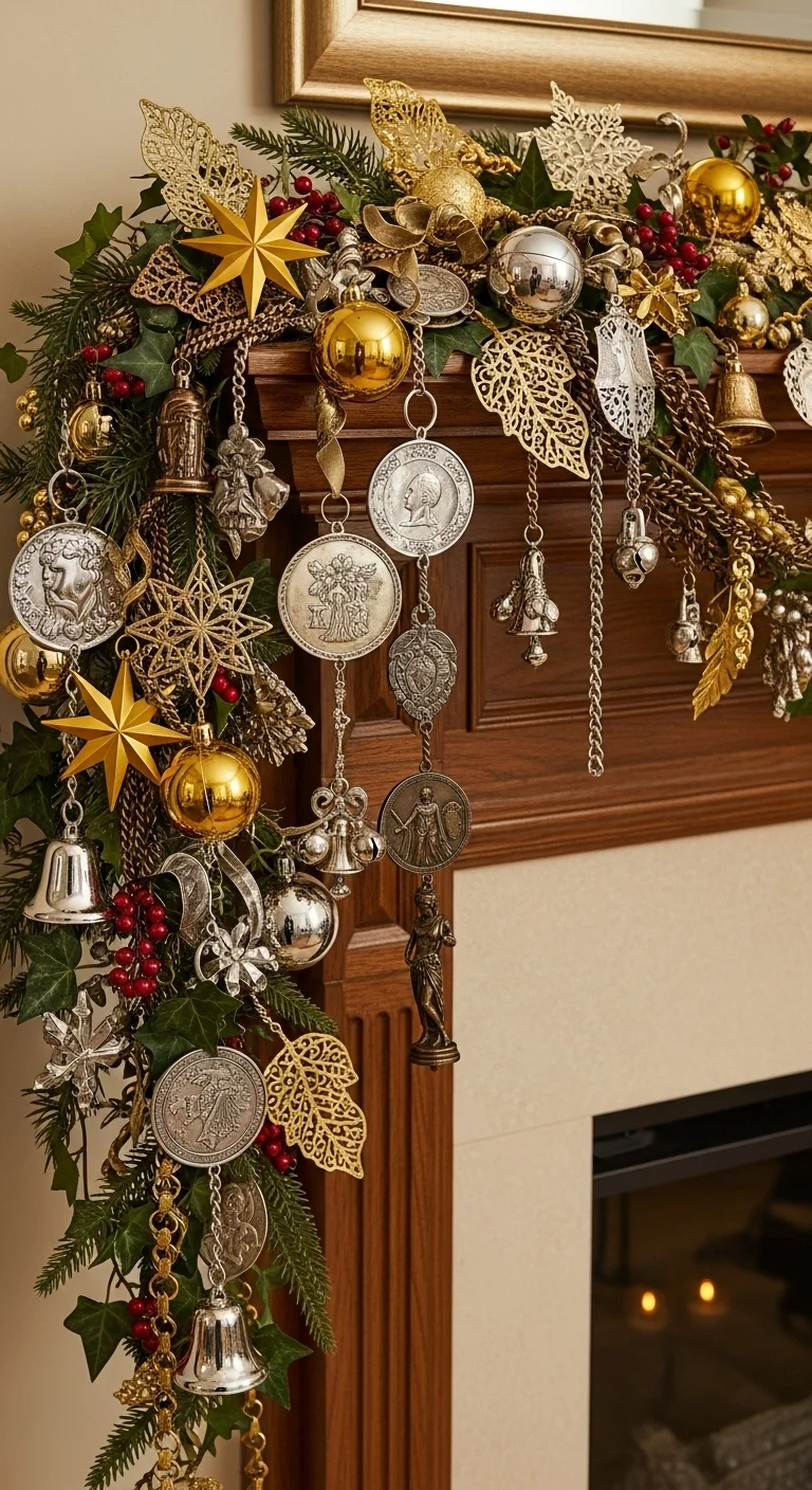 Mix metallic tones—gold, silver, and bronze—for dimension. Keep ornaments small but plenty. The mix feels elegant without effort. Metallic spray paint can update old décor affordably. Add candles for warmth, and your mantle will shimmer beautifully.