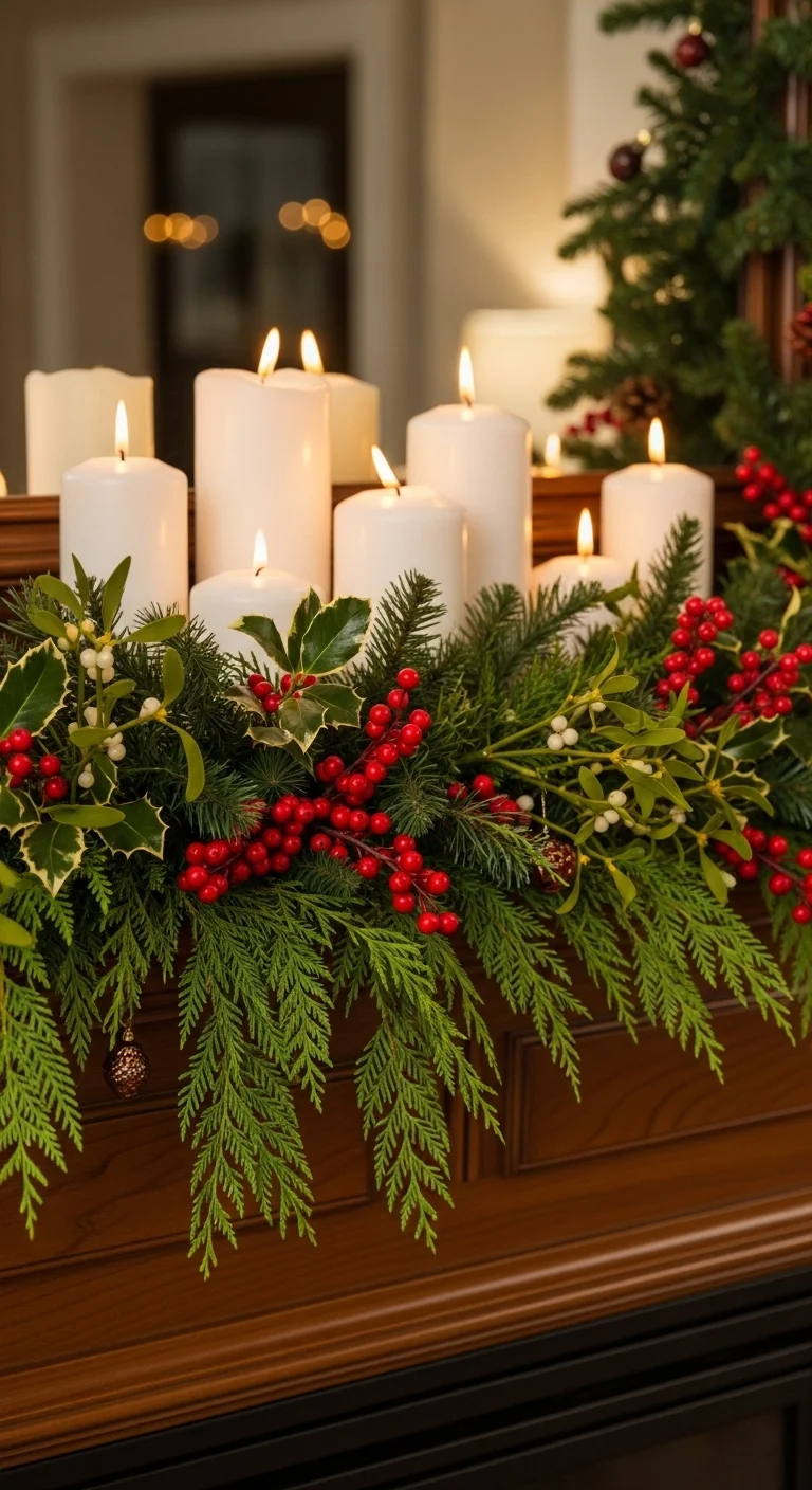 Layering adds richness. Combine different garlands—pine, eucalyptus, and berry stems—for depth and color. Let each hang at different lengths. It looks full and organic. You can use faux greenery from discount stores to keep costs low.