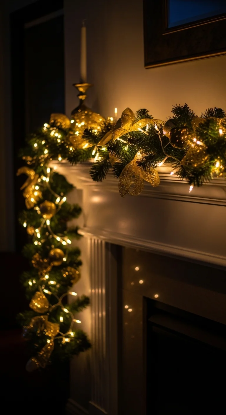 Fairy lights make any setup enchanting. Wrap them around garlands or line the edge of the mantle. Choose warm white bulbs for a cozy effect. Battery-operated versions are tidy and safe. This simple trick adds instant holiday glow.