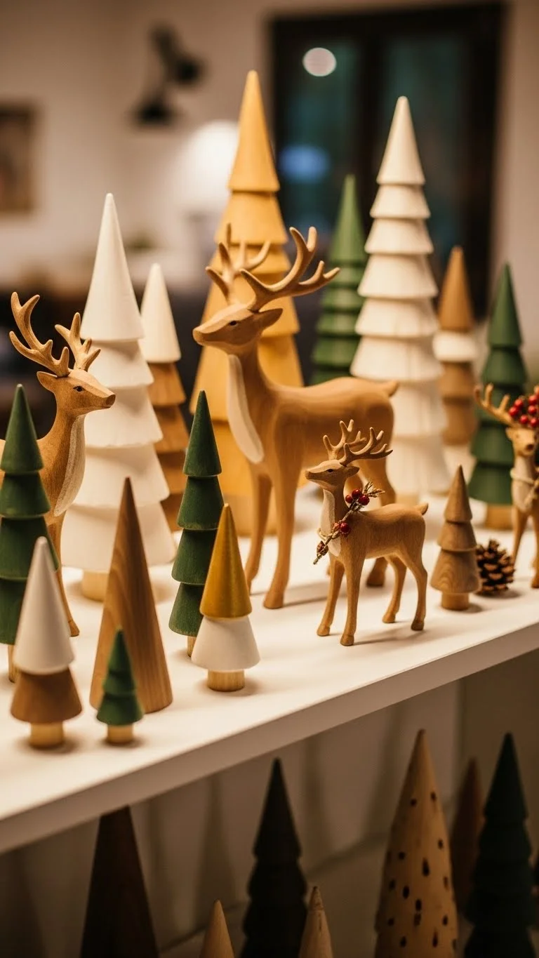 Incorporate natural wooden decor pieces like trees, stars, or reindeer. They add warmth and structure without overpowering. You can find affordable wooden figures or make your own using unfinished craft wood.