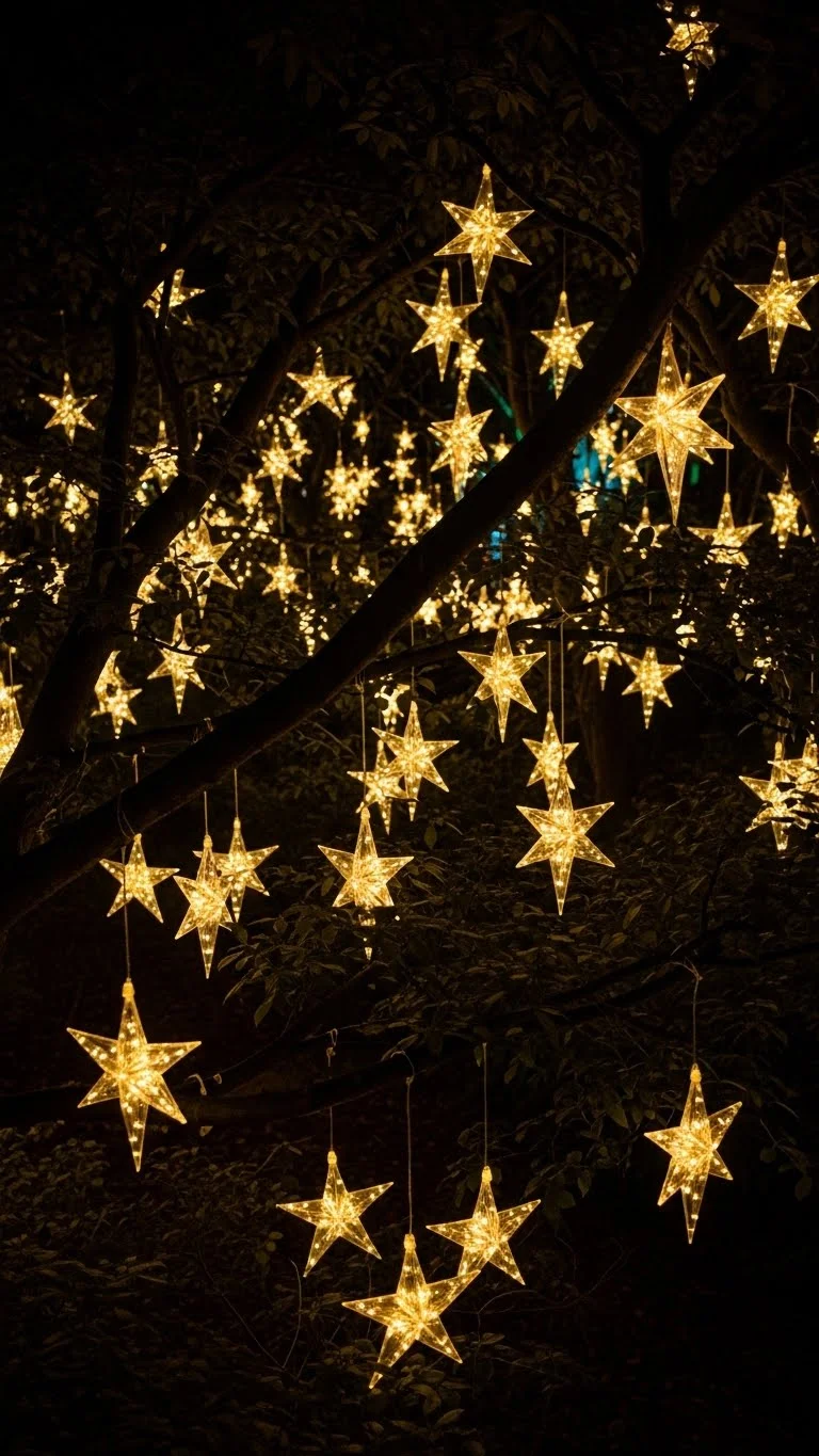 1. Star Lights Hanging From Trees