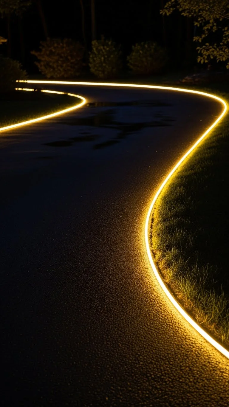 Rope lights create a clean border along your driveway. Lay them flat on the ground or secure them with landscape stakes. They provide great visibility for guests arriving at night. Choose warm white for a soft look or color-changing options for fun. Stretch your budget by lighting only the first half of your drive. Rope lights also work well around flower beds or rock borders.