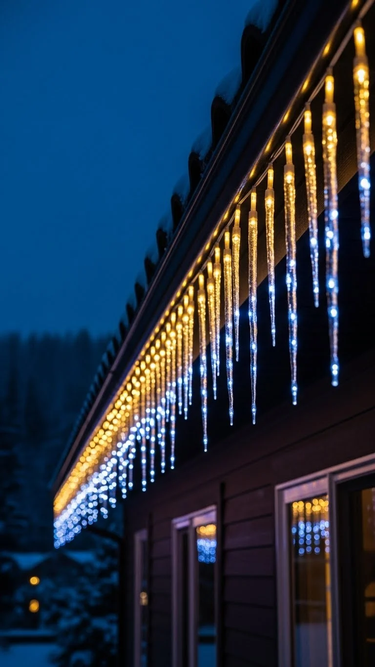 1. Icicle Lights Along the Gutters