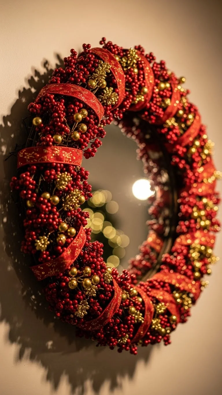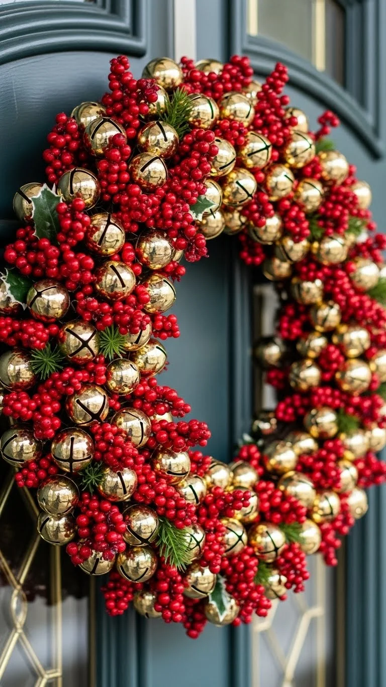 A red berry wreath looks festive on any door. Add small gold bells or ornaments to bring sparkle. Use a gold hanger or ribbon to finish the look. This wreath works indoors or outdoors. If you want a fuller look, add greenery accents or a velvet bow. Reuse the wreath each year and switch the add-ons to fit your style.