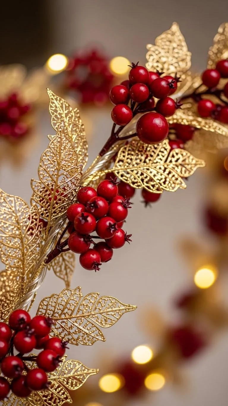 1. Gold Garland Wrapped with Red Berries