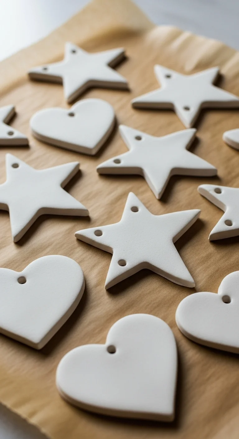 Use air-dry clay to make your own ornaments. Cut them into stars or trees and tie with twine. This DIY is budget-friendly, therapeutic, and adds a personal touch to your decor.