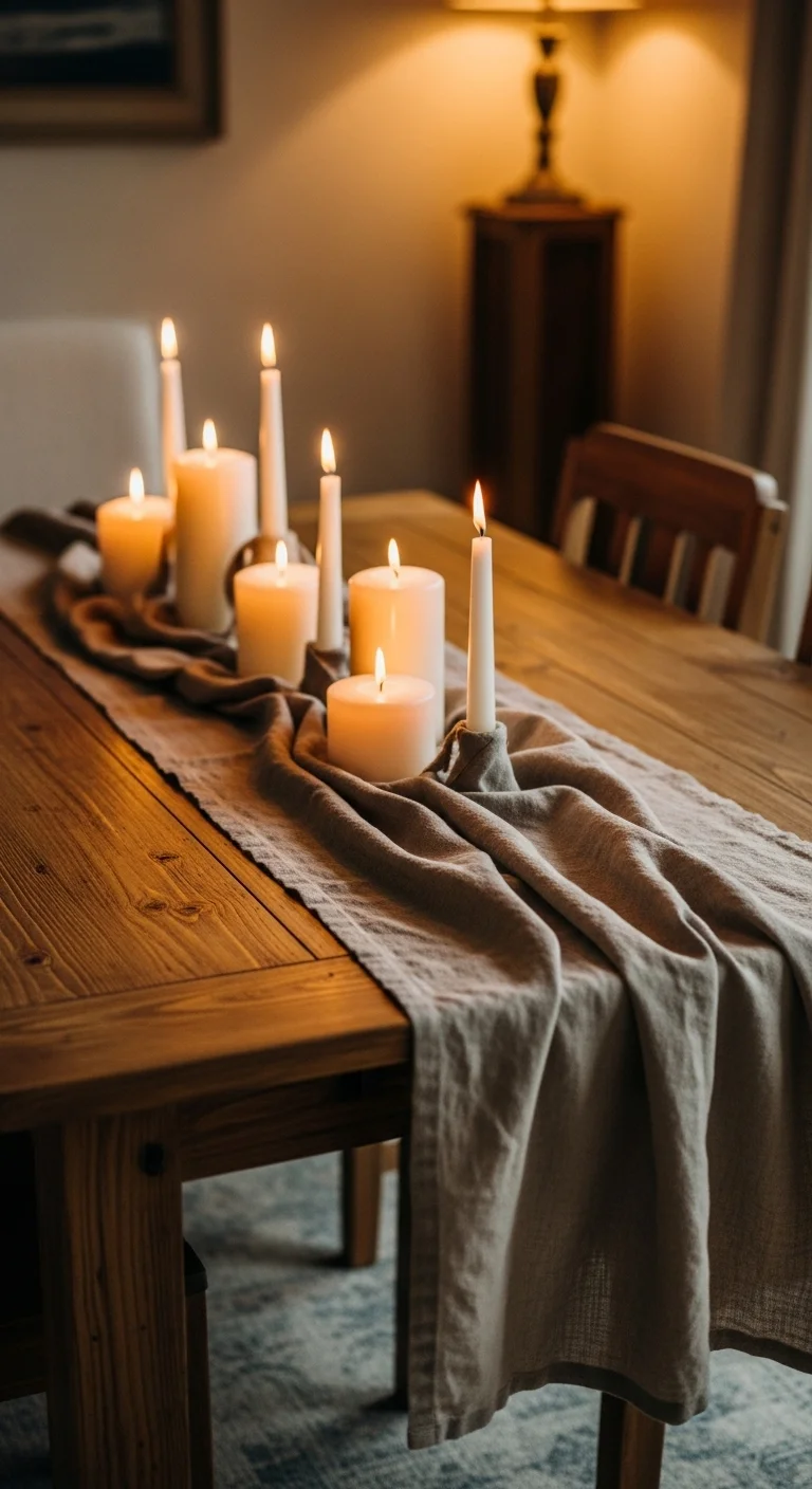 Ditch the bold patterns and go for a plain linen runner. Its natural wrinkles and texture add casual elegance. Pair with simple dishware and wooden candle holders for a cohesive look.