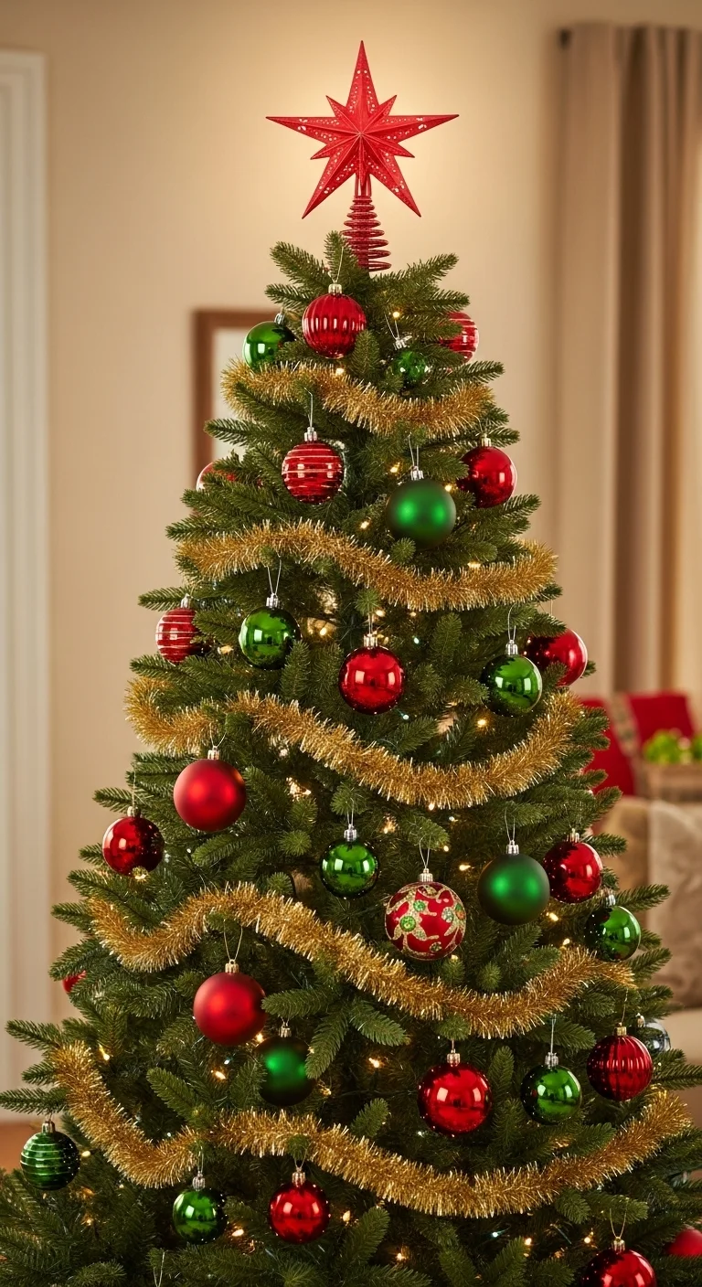 This timeless combo never fades. Red and green ornaments feel like pure Christmas. Add gold accents or plaid ribbons for extra charm. For an easy DIY, paint plain baubles in alternating colors for a cohesive look.