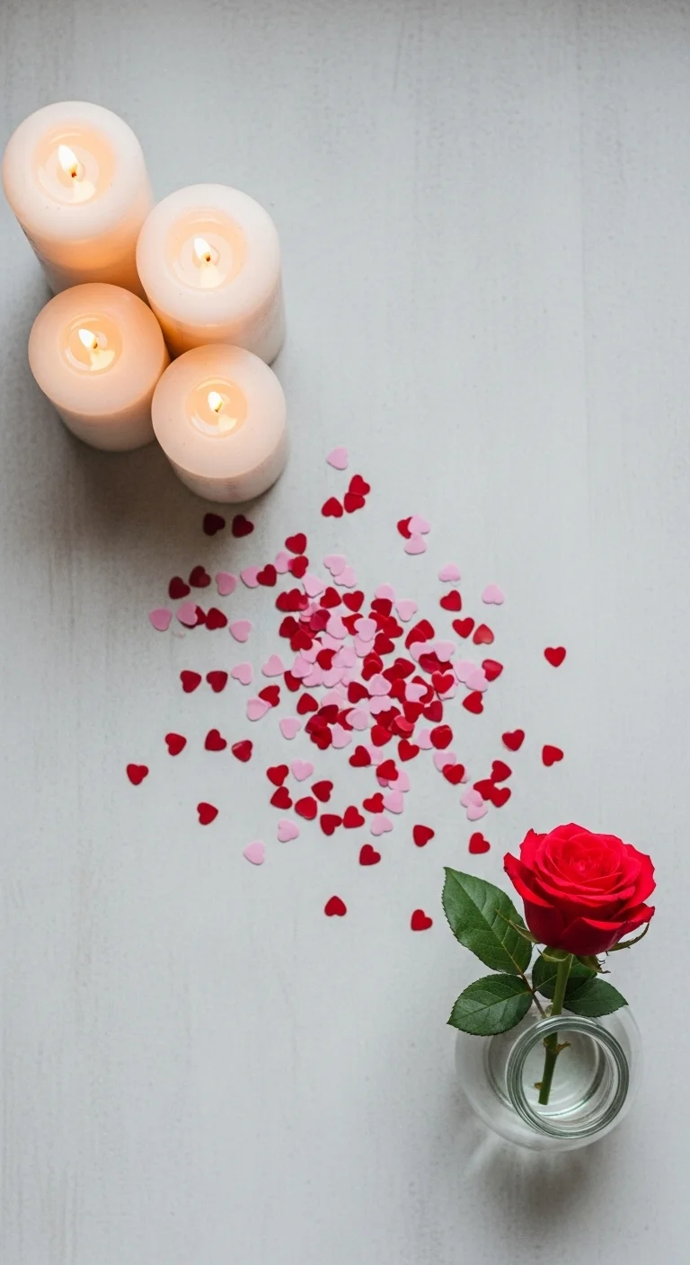 Hearts are the iconic Valentine motif, but too many hearts can feel overdone. Use them as accents, not the main focus, to keep your flat lay elegant.