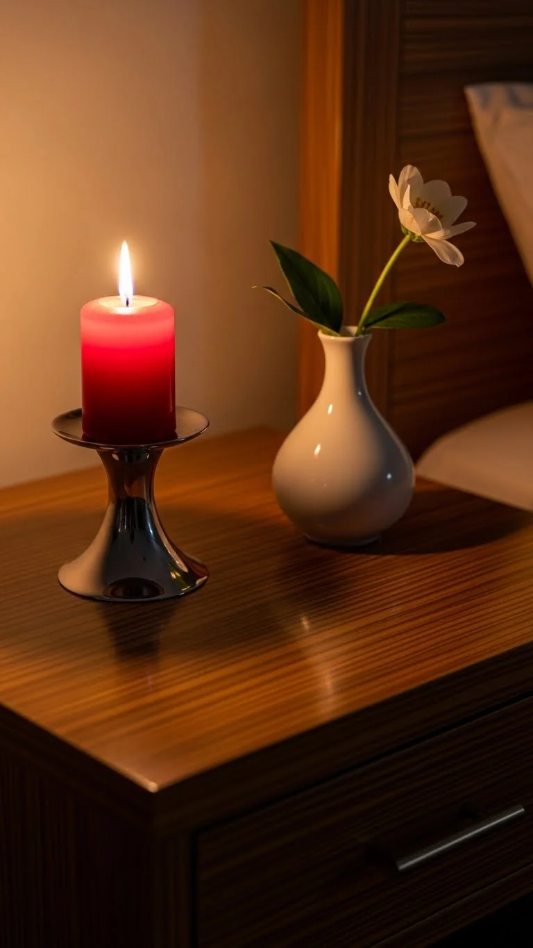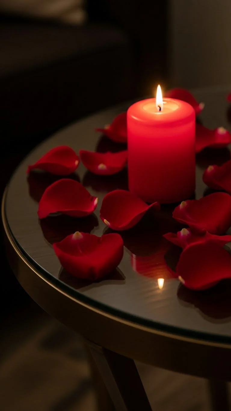 Add a red candle or vase to nightstands for continuity in your Valentine theme. Small touches like this create visual harmony across rooms.