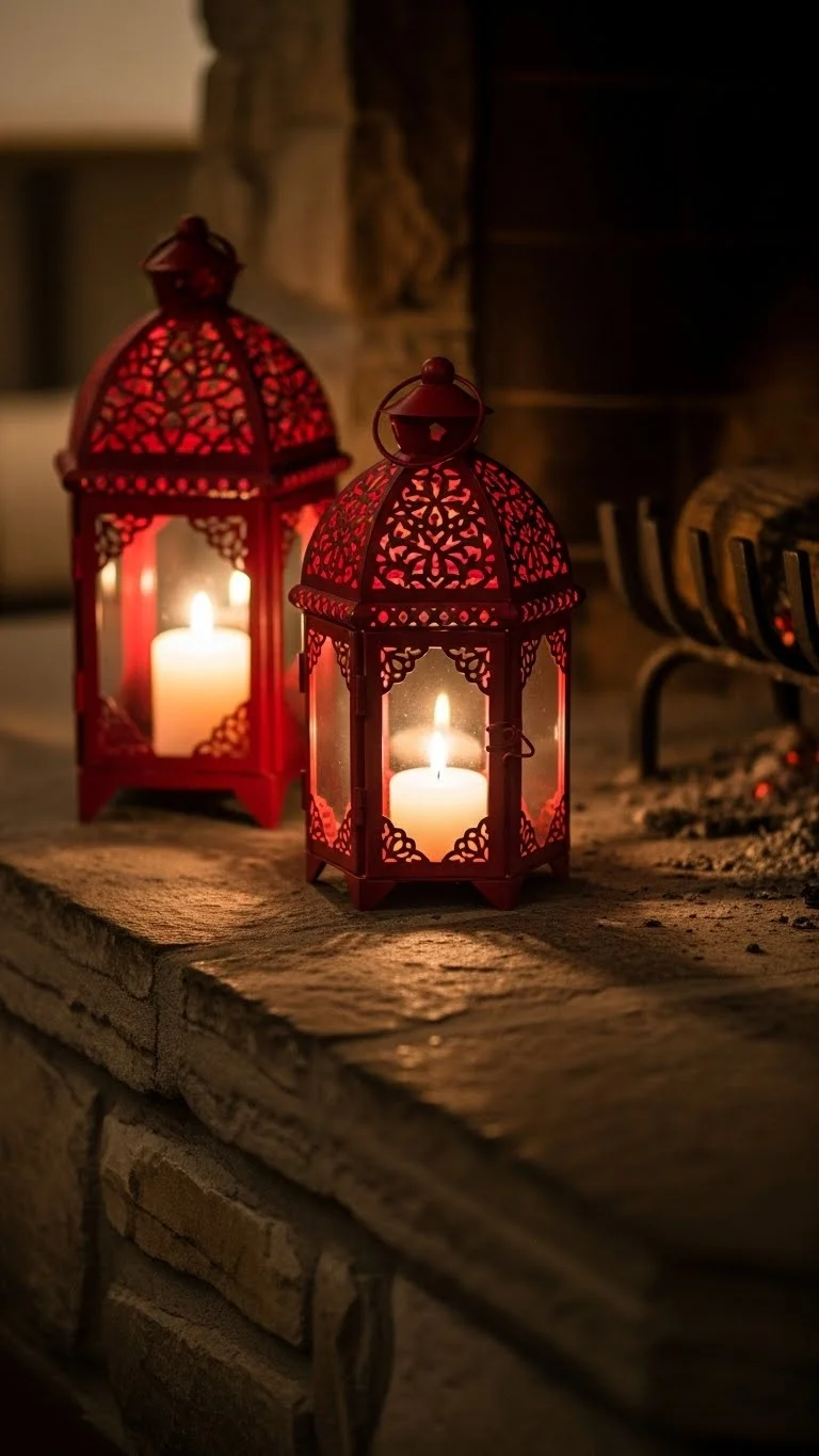Paint lanterns red or use red lanterns on the hearth for a dramatic focal point. Add candles inside for warmth. Group them in odd numbers to create balance and depth. Lanterns are versatile and reusable for other events.
