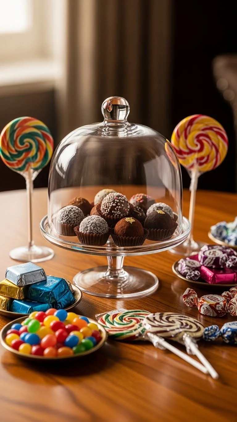 Set a small plate of chocolates or truffles as part of the centerpiece. Use pretty bowls or plates. Even a few treats add charm and make guests feel special.