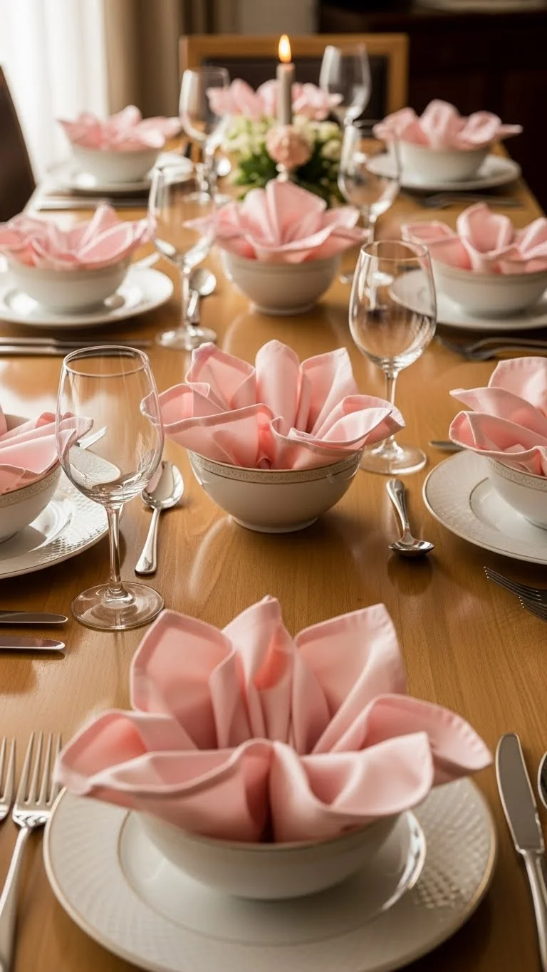 Place folded napkins inside small decorative bowls at each seat. This adds texture and dimension while keeping things practical.